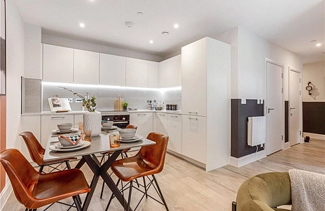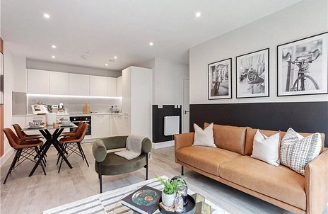 These Berkeley Homes built apartments are delivered to a superb standard with some of the key highlights being stone worktops with Bosch integrated appliances to the kitchen, Karndean timber effect flooring to living areas, recessed LED lighting, audio/video door entry system and a 10-year Premier Guarantee. Residents will also benefit from a free two-year membership to the on-site car club.