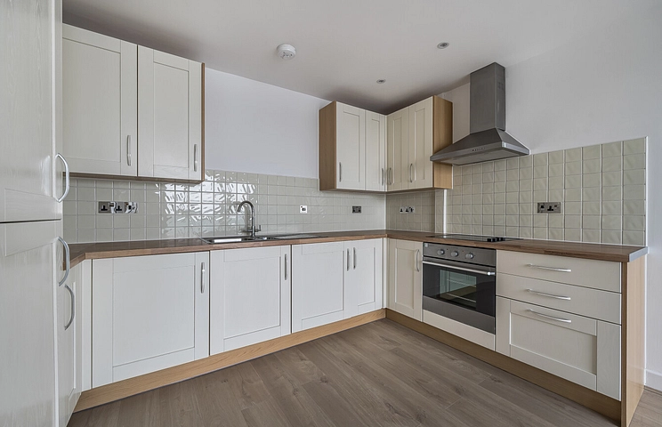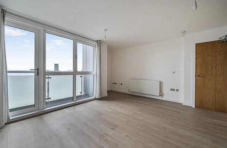 Set on the sixth floor, this well-proportioned apartment offers bright, contemporary living in a convenient East London location. The heart of the home is a spacious open-plan kitchen and reception area, designed for both relaxing and entertaining, with large windows that draw in natural light and a layout that allows for flexible dining and lounge arrangements. A private balcony extends the living space outdoors, providing the perfect spot for morning coffee or evening unwinding above the bustle of the street.