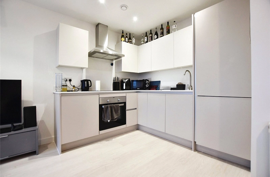 Magnolia House - a wonderful 1 bedroom apartment located on the fifth floor (serviced by a lift) with a private south facing balcony. Located next to the town center this great flat comes equipped with contemporary fully-fitted kitchens with integrated appliances and composite worktops, sumptuous bathroom, fitted wardrobes to the main bedroom and high quality fitted flooring throughout with the added bonus of a private balcony. In addition, you will find a private, landscaped residents garden and parking that can be offered for an annual charge.