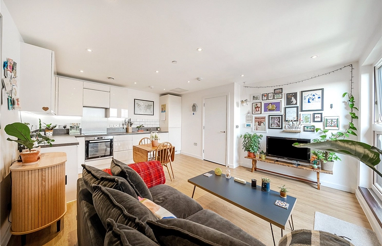 This stunning top floor apartment is the only plot in the building to benefit from two balconies which both enjoy a sunny aspect and unobstructed views of the surrounding countryside. The light and airy accommodation consists of two double bedrooms, a modern bathroom and an impressive open plan kitchen/dining/living space. Further benefits include allocated parking and a lease over 120 years.