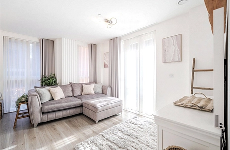 The apartment features two well-proportioned bedrooms, each offering flexibility for a range of needs, whether as sleeping accommodation, a home office, or guest space. A modern family bathroom serves the property, finished to a clean and neutral standard.
