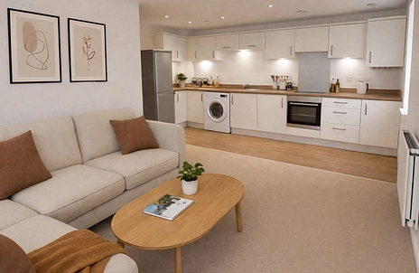 **These photos are for information purposes only and may not represent a true likeness for the units being sold. They may have been taken from earlier phases or similar developments/house types and digitally furnished to represent how the home could be laid out; the final colours/appearance/specification may differ from the images and are not plot specific. We advise applicants to make their own investigations on future development in the area. We would suggest contacting the local authority for more information.