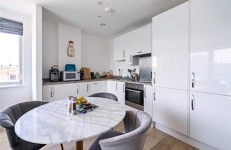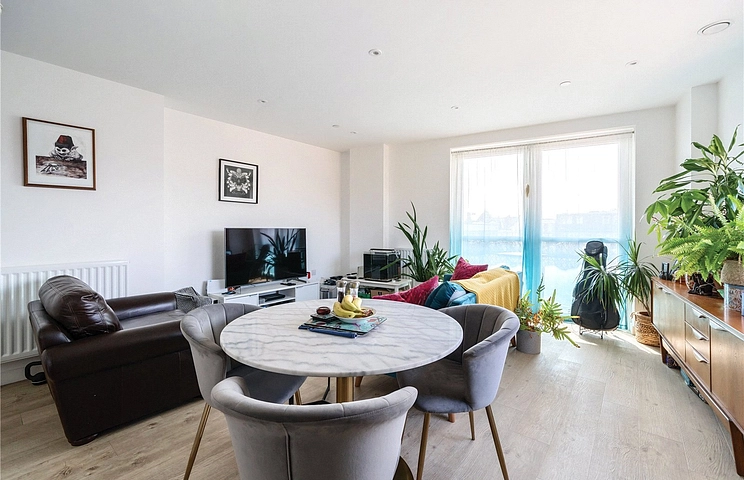 The apartment features a bright and generous open plan kitchen/reception room, with direct access to a private balcony that adds valuable outdoor space. There are two well proportioned double bedrooms along with a modern family bathroom and an additional separate WC, enhancing convenience for occupants and visitors alike.