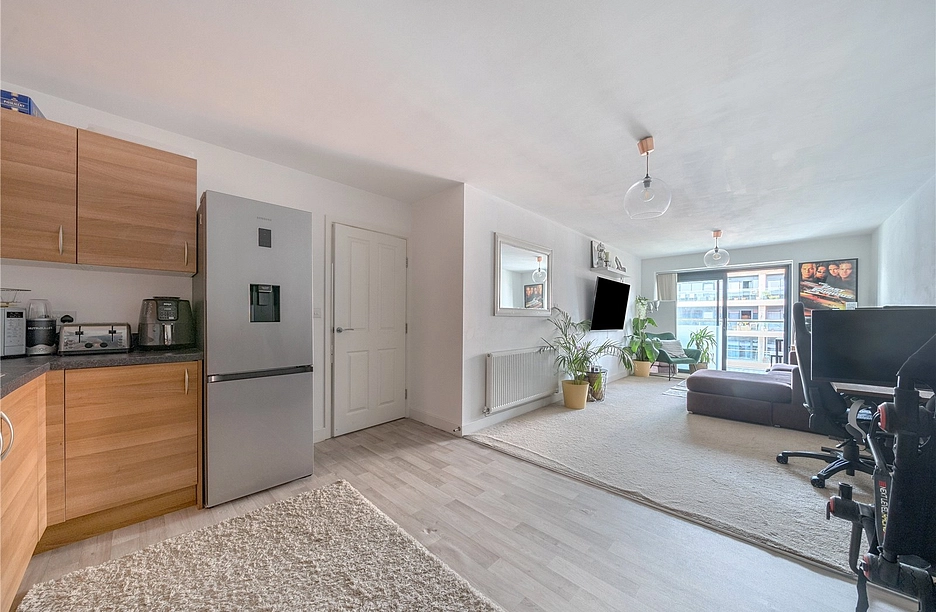 Located within this contemporary racecourse development in Newbury, is this well-presented two bedroom, one bathroom apartment situated on the fourth floor of Hackwood House. The home benefits from a private balcony and an open-plan kitchen/living space, creating a light and sociable environment. There are two good-sized bedrooms, a modern bathroom, and an allocated parking space outside.