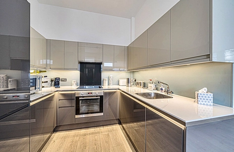 This stylish penthouse apartment is located on the third floor of this modern development and accessed via a communal entrance leading through to an external courtyard and a private front door to the property itself. The apartment provides bright, spacious accommodation and impressive high ceilings. One entering the property, a modern open plan kitchen/dining/living space provides a warm welcome. The sleek gloss kitchen is fully fitted with appliances and there is ample cupboard and countertop space. An inner hallway provides access to the two well proportioned bedrooms and a modern bathroom. Doors open from the master bedroom on to a private balcony spanning the width of the apartment.