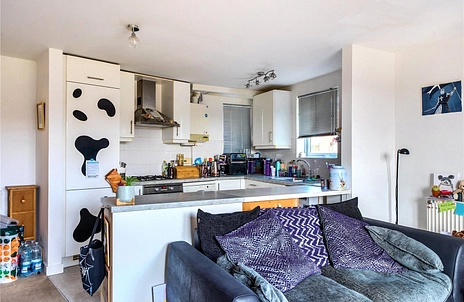 The property features a bright and spacious open-plan kitchen/reception room, ideal for both relaxing and entertaining, with ample room for dining and modern living. The kitchen is well laid out with good storage and workspace, seamlessly connecting to the main living area. There are two well-proportioned bedrooms, both offering comfortable accommodation, along with a family bathroom and additional hallway storage.