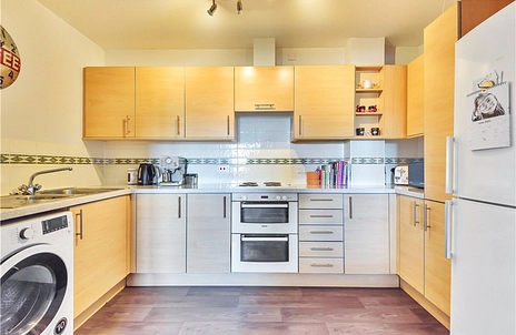 This apartment features an entrance hall with storage space, two double bedrooms with an en suite bathroom in the master, family bathroom and an open plan kitchen/living room.
