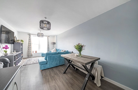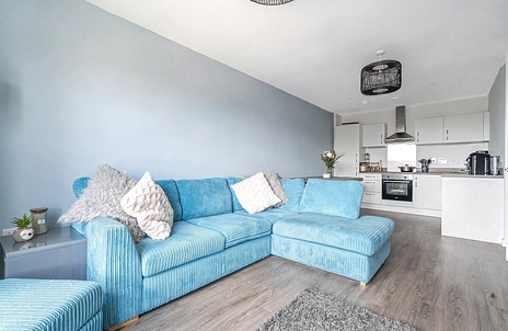 The apartment boasts a bright and spacious open-plan living room and kitchen, perfect for modern living and entertaining. The kitchen is well-fitted with sleek units and integrated appliances.
