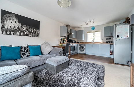 A rarely available two bedroom coach house within the popular Woodley Airfield Development. This exception property provides spacious, well-planned accommodation and benefits from it’s own front door. There is a large open plan kitchen/living/dining space, two good size double bedrooms and a modern bathroom. Outside, there is parking and this property benefits from a garage and a large storage space.
