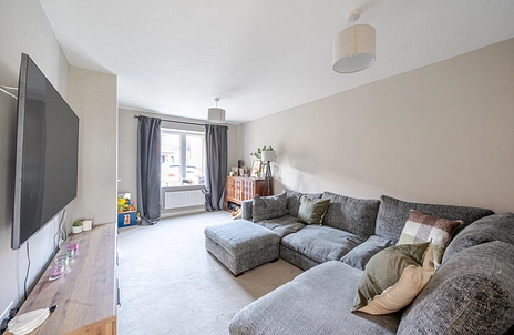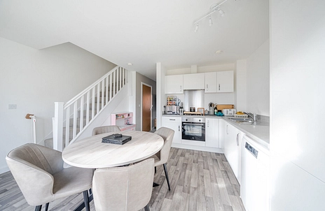 The ground floor features a welcoming entrance hall, a bright and airy reception room perfect for relaxing or entertaining, and a modern kitchen/breakfast room with ample storage and space for dining. A convenient downstairs WC adds practicality for guests and busy households. From the kitchen, French doors open onto a generous private rear garden, ideal for outdoor dining, entertaining, or simply unwinding after a long day.