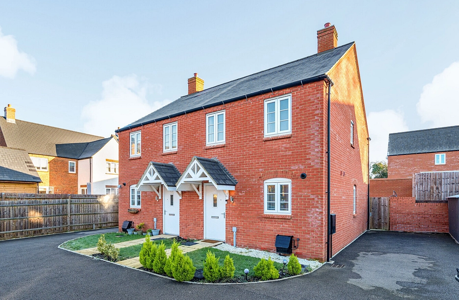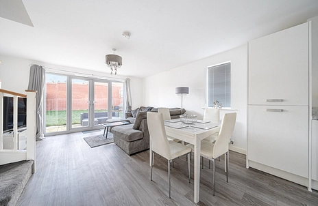 Located within this modern development is this two double bedroom semi detached house with parking alongside. The property is immaculately presented and offers an open floor ground floor living space with a fully fitted kitchen and French doors opening on to a private garden. There is also a downstairs WC. Upstairs, there are two double bedrooms and a modern bathroom.